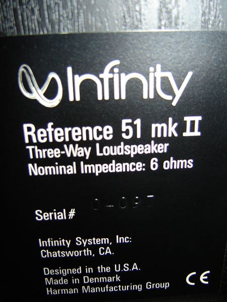 Infinity Reference 51 mk II trosistemski samostojeći zvučnici, par, Made in Denmark, savršeno uščuvani, 10-150W preporučena snaga pojačala, 90dB osjetljivost, 35Hz-20kHz frekvencijski raspon, 8" bass, 4" midrange i 10mm high driver, crni, dimenzije bez šiljaka 870x254x307, težina 16,5 kg.