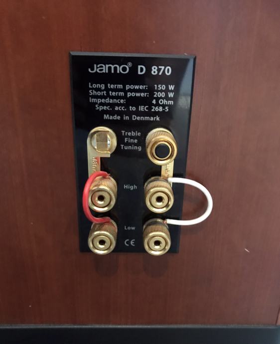 Odlični samostojeći 3-sistemski zvučnici. Potrgan je jedan zvučnički konektor, no to ne utječe na zvuk jer "jumper" drži kontakt. Osim toga zvučnik je očuvan, i ima samo par manjih ogrebotina. Dolazi s mrežicama, šiljcima i zamjenskom ambalažom. Ovaj model je glasio kao "najbolji Jamo ikad proizveden" i kao nov je koštao nekih 4000$.