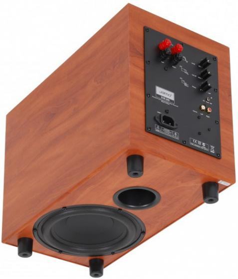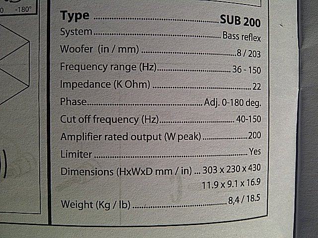 The SUB 200 from Jamo is a high-quality subwoofer that adds a heavy bass kick to your home stereo or multi-channel speaker system. The wooden bass-reflex cabinet houses an 8" long-throw woofer and a powerful 200W amplifier to deliver strong bass at frequencies down to 36Hz. Level, phase, and cutoff controls allow you to adjust the subwoofer's sonic response to match your satellite speakers and your listening environment. The SUB 200 automatically turns itself on and off, based on when an audio signal is present.