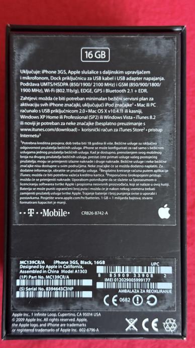 Cijena samo iPhona 3GS je 90€