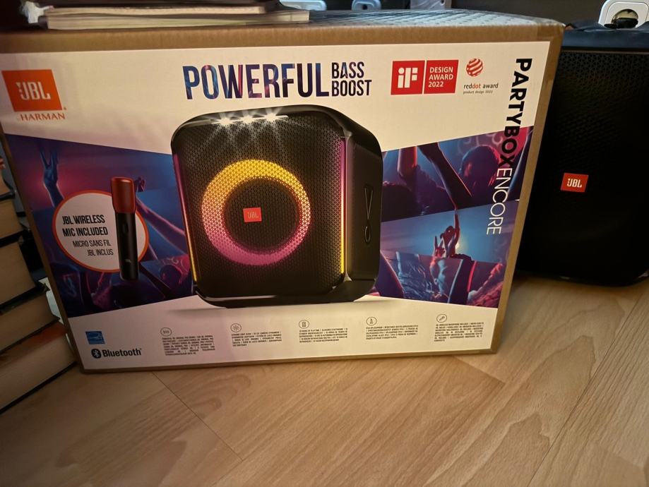 Jbl party box Encore sa ukljucenim mikrofonom,potpuno novo zapakirano, dobiveno na poklon