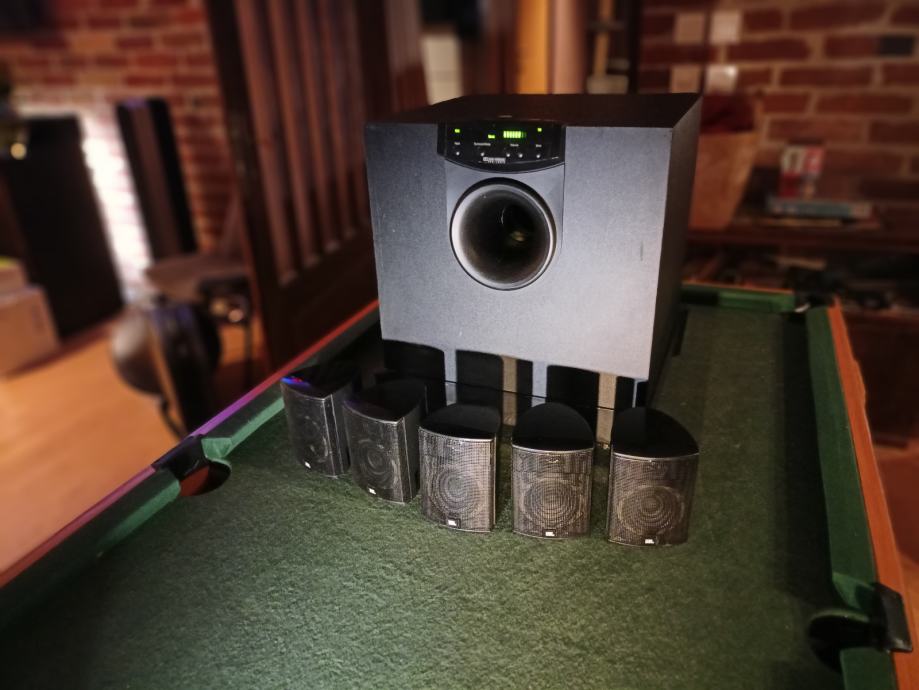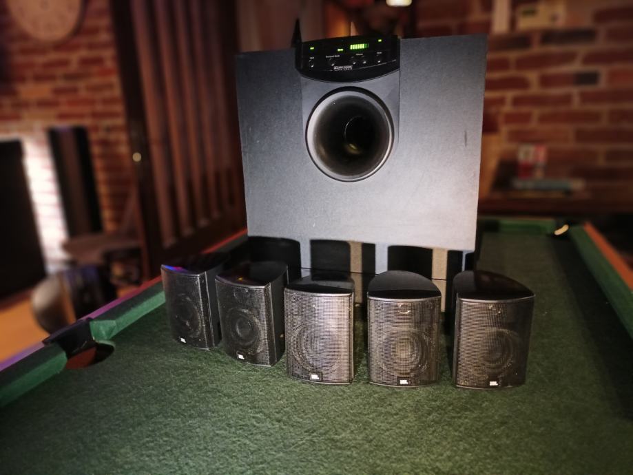 5.1 kompletan surround sustav u jako dobrom stanju. Odličnog zvuka i brutalnog basa (sub sam ima 16kg) sa 5 satelita (još 4 kg ukupno) i pripadajućim kablovima. Ima i opciju daljinskog upravljača koji je u postupku nabave. Kad i njega pribavim, cijena će bit nešto veća. Moguća zamjena za razno (prednost kef zvučnici). Šaljem poštom - poštarina 20ak € radi težine.
