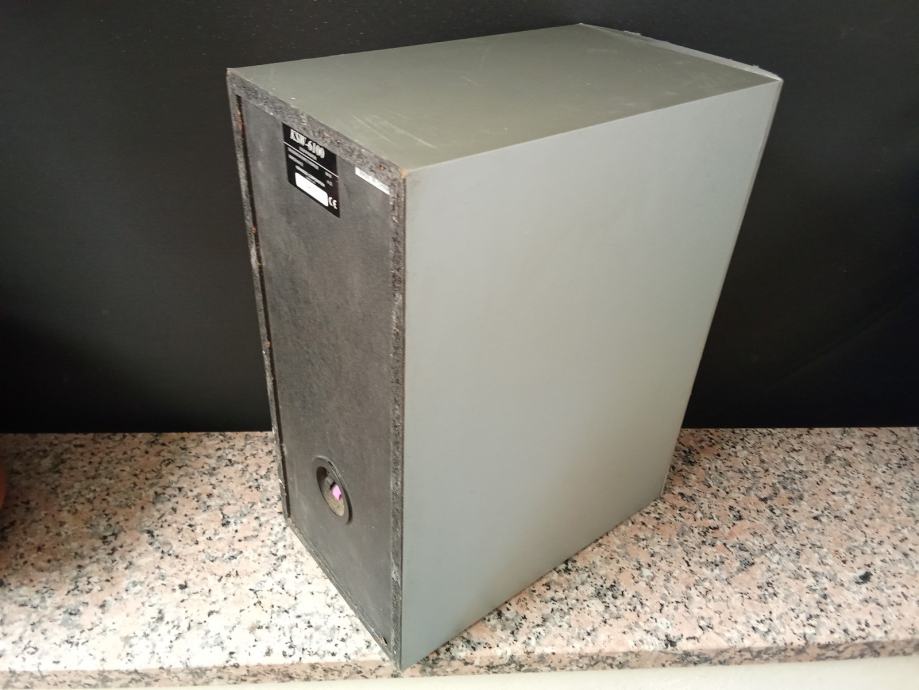 Ispravan je. Promjer zvučničke jedinice (promjer drajvera) je oko 12 cm, snaga 80 W pri 6 Ohma, širina kutije 19 cm, dubina 35, a visina 40 cm. Fotografije priložene uz oglas prikazuju ovdje oglašeni predmet.
