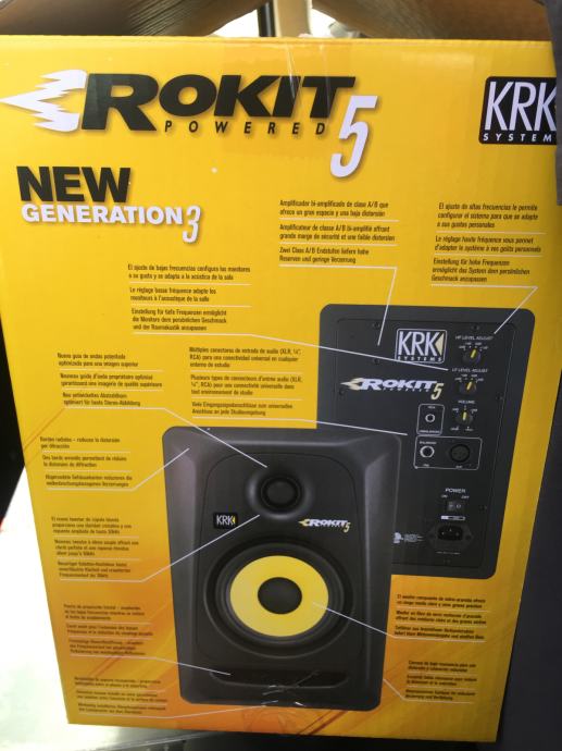 "KRK ROKIT 5 G3 (3. Generacija) aktivnih studijskih monitora omogućavaju profesionalne performanse i preciznost tijekom snimanja, miksanja, masteriziranja i preslušavanja. Ovaj studijski monitor se sastoji od 1" soft dome tweetera i 5” glass-Aramid composite woofera. Donosi visoke frekvencije od 35kHz, vokalnu čistoću i prošireni bas odziv. Vlastito bi-amp class A/B pojačalo omogućava razinu zvučnog pritiska (SPL) do 106dB. ROKIT talasovod je dizajniran za idealan prikaz zvuka s mjesta slušanja. Prednja pozicija basa umanjuje granicu spajanja kako bi omogućila fleksibilno pozicioniranje unutar prostorije, dok projektirana površina smanjuje difrakcijsko iskrivljenje. Višestruki ulazi omogućavaju jednostavnu integraciju ovih monitora unutar bilo kojeg sistema. "