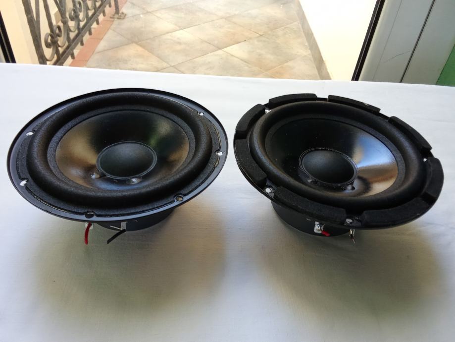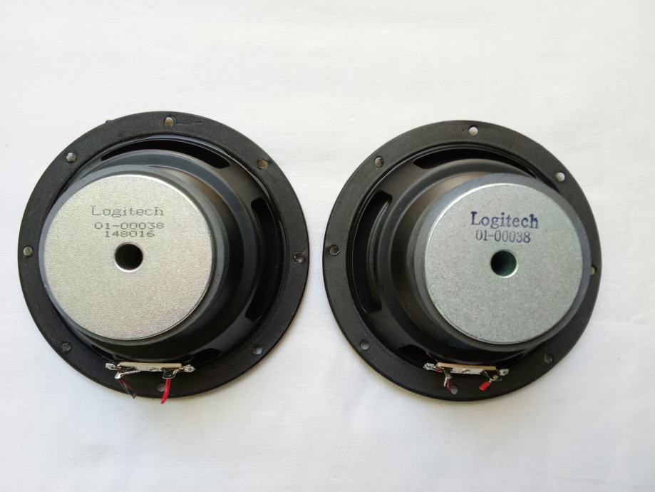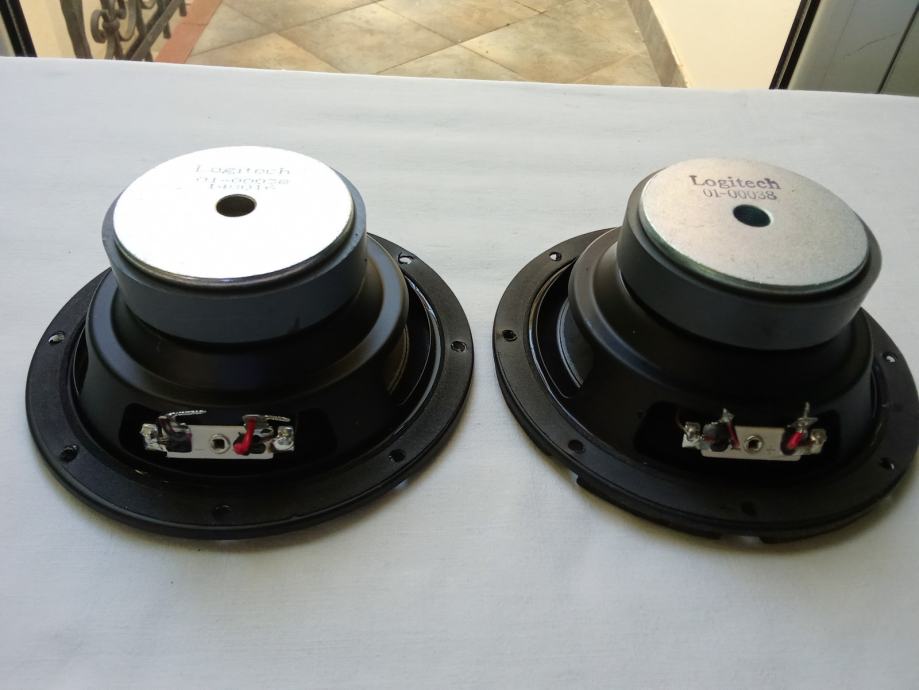 U paru za 15 € ili pojedinačno po 8 €, prodajem basove Logitech 01-00038. koji su pripadali aktivnim subwooferima Logitech X-230. Snaga im nije navedena, dok multimetar pokazuje vrijednost otpora 4 Ohma. Vanjski promjer ovjesa je 117 mm, vanjski promjer metalnog obruča košare 138, promjer magneta 71 mm, debljina magneta 15 mm, dubina ugradnje 53 mm, a promjer rupe na kutiji treba biti oko 120 mm.