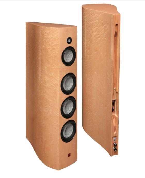 Cabinet constructed from artisan, variable density, resonance balanced, instrument-grade plywood, custom manufactured on model-specific formers from selected tonewoods with acoustically non-filtering bonding technology. sonically superior to synthetic, metal and most solid wood enclosures due to a balanced resonance-spectrum and natural, psychoacoustically vanishing sonic signature which avoids " skewed spectrum and "high tech" parasitic artifacts , a key reason for listening fatigue.