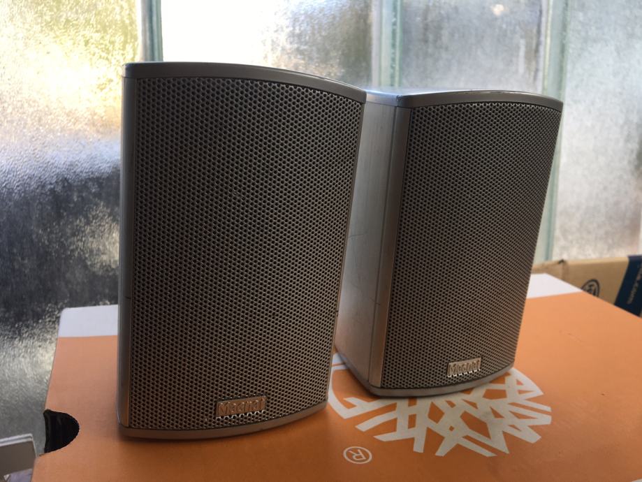 Odlični mali zvučnici u aluminijskom kucistu. Dva suraond 2x75W i centaralni 80w. Vrhunski zvuk, kristalno čist.