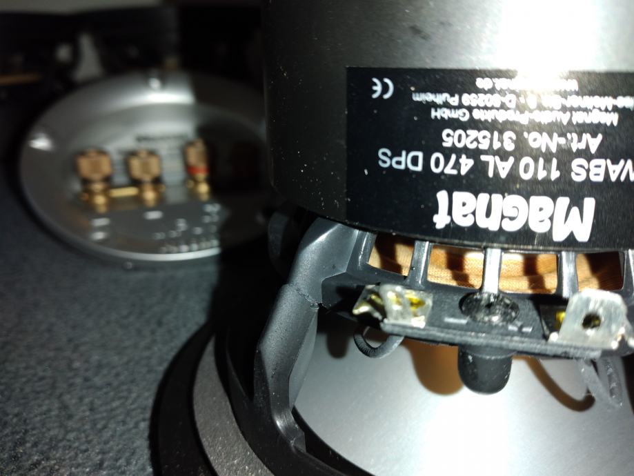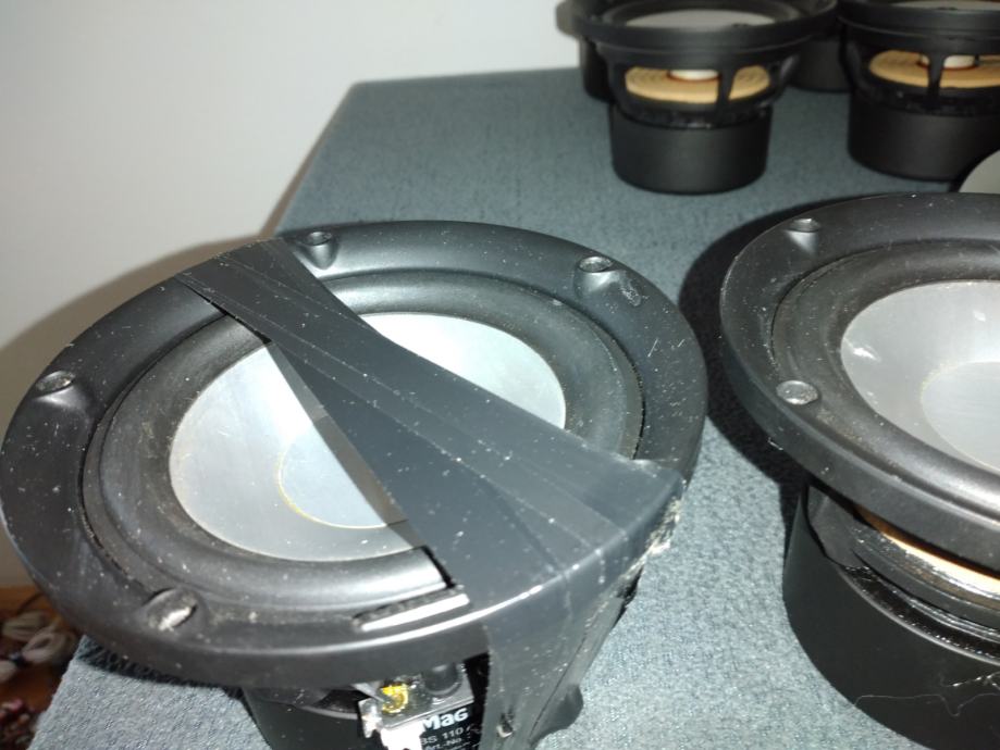Dva bas srednjotonca oštećena , jedan ima oštećenje na menbrani a drugi ima napuklu košaru zato je namotana traka crna