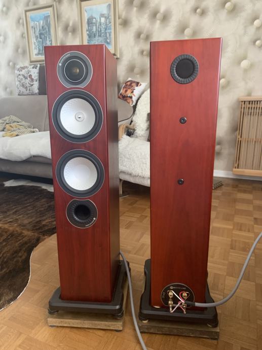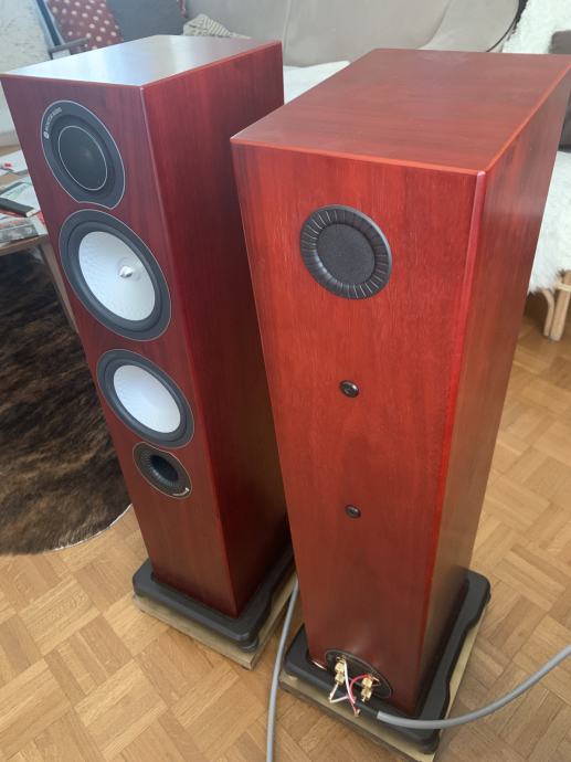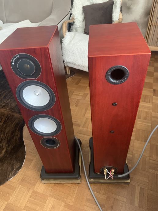 Prodajem par Monitor Audio Silver RX-6 zvučnika. Zvučnici su u izvrsnom stanju, korišteni su s velikom pažnjom audiofila. Također s potpuno očuvanom vanjštinom - izgledaju kao da su izašli iz trgovine. Zvuk je odličan, rezolutan, ugodan pravi audio zvuk. Karakterizira ga pogodnost za različite žanrove glazbe: klasika, jazz, rok, zabavna... zvuk je uvijek prirodan i nenapadan - isprobao sam ga s različitim pojačalima (Marantz, NAD, Topping...): uvijek je jako neutralan. Visoke osjetljivosti (90db) što znači da izvrsno radi i sa slabijim pojačalima čak i ispod 20W. Impedancija 6Ohma. Sinusno opterećenje 125W. Iznenađujuće dobro i duboko reproduciraju bas. Cijeli frekvencijski opseg je prilično linearan. To su zvučnici velike brzine, preciznosti, neutralni su i stvarno lijepo izgledaju.
