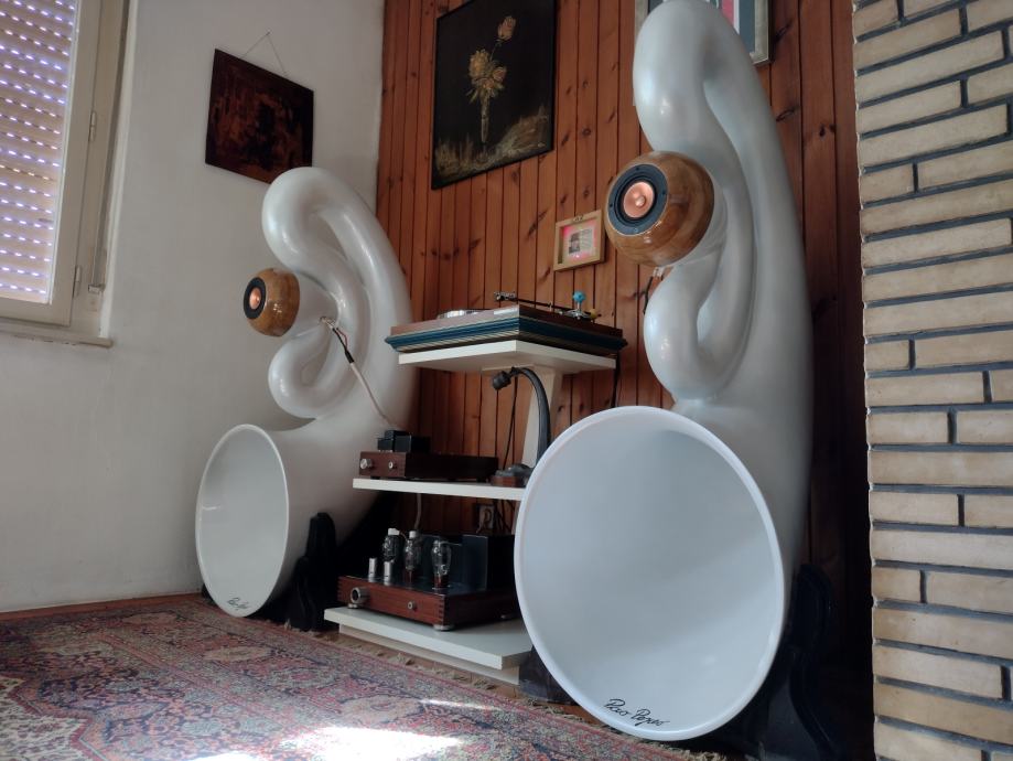 Horna zvučnici s malim ali odličnim Mark Audio Apair 7 jedinicama. Radi se o 4 inchnim fullrenge zvučnicima koji uz dobro dizajniranu hornu daju izniman zvučni doživljaj koji samo takvi zvučnici mogu dati.