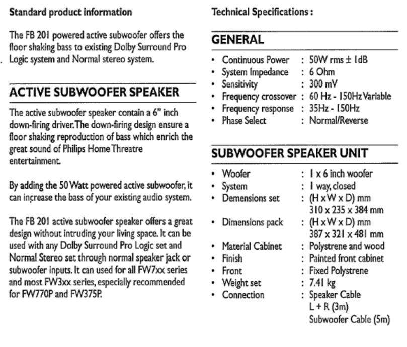 Prodaje se vrlo malo korišten Philips aktivni subwoofer, model FB201, specifikacija u galeriji.