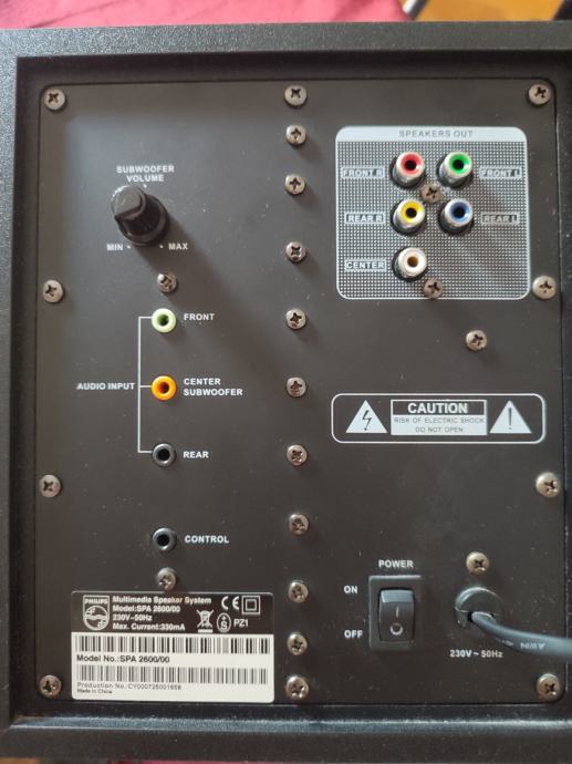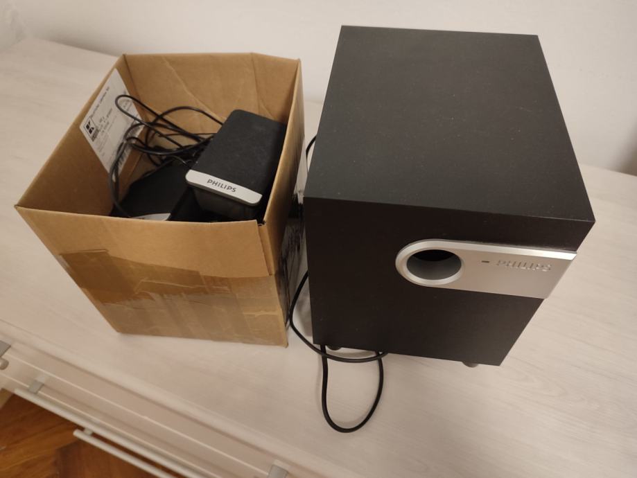 Set zvučnika i subwoofer, vidljivo na slikama.