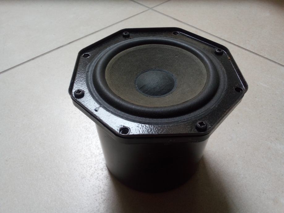 Radi bez greške. Oznaku modela pročitajte na fotografijama uz oglas, koje ujedno prikazuju primjerak kojeg prodajem. Snaga mu nije deklarirana, otpor je 8 Ohma, vanjski promjer ovjesa 92 mm (3.5 inča), potreban promjer rupe na kutiji 105 mm, promjer rezonantne kutije 103.5 mm i dubina rezonantne kutije 95 mm ako se pričvršćuje sa vanjske strane kutije.