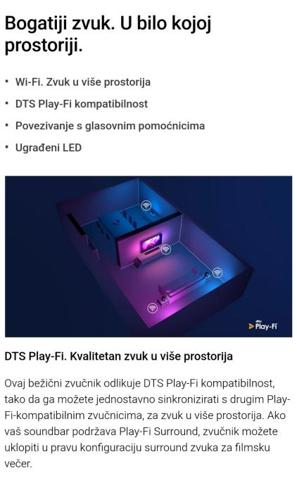 Ako i nemate dts play fi tv, dts play fi funkcionira i samostalno između zvučnika i soundbara.