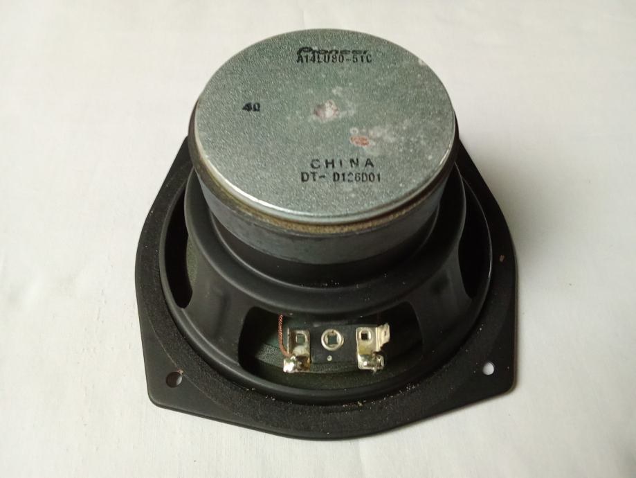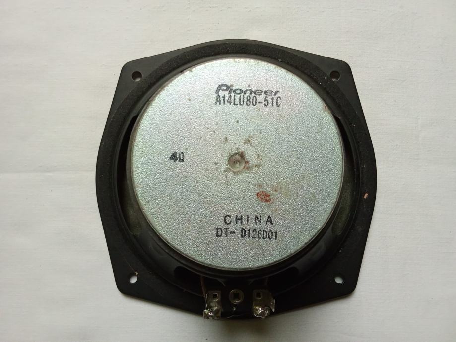 Prodajem samo jedan potpuno ispravan 5.5-inčni bas zvučnik Pioneer A14LU80-51C DT-D126D01, koji je pripadao pasivnom subwooferu Pioneer S-DV353. Njegova maksimalna snaga je 60 W, pri otporu 4 Ohma. Vanjski promjer ovjesa je 135 mm, vanjski promjer metalnog obruča košare 155 (u predjelima gdje je najuži), dubina ugradnje 72 mm, promjer magneta 80, debljina magneta 16 mm, a promjer rupe na kutiji treba biti 135 mm. Masa predmeta je 800 grama.