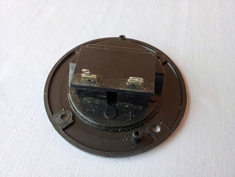 Ispravan je i čitav. Pripadao je kutiji Pioneer TS-WX75. Idealan promjer rupe na kutiji treba biti 50 mm, može biti do 55 mm. Vanjski promjer platičnog obruča je 75 mm.