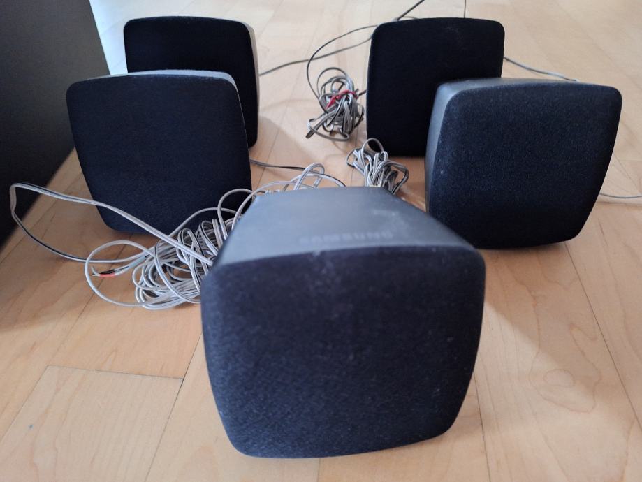 Prodajem zvučnike sa fotografija, 5.1 Samsung, bas PS-WZ120 - 6 oma, manji PS-RZ120 - 3 oma (2 komada), PS-FZ120 - 3 oma (2 komada), PS-CZ100 - 3 oma, bas bez pojačala, cijena: 25 eura, preuzimanje isključivo osobno, lokacija: Međimurje.