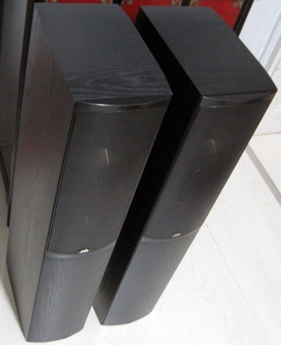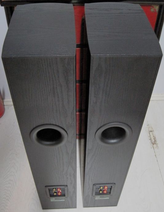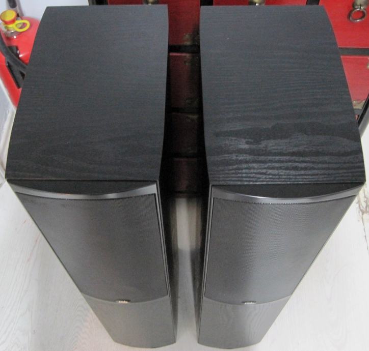 Samostojeći zvučnici, očuvani (9/10), s originalnom ambalažom. Dugo godina "best buy" zvučnici u tom rangu cijene. Osjetljivost: 91 dB (89 dB u gluhoj komori). Impedancija - 8 oma (nominalna); 6 oma minimalna.