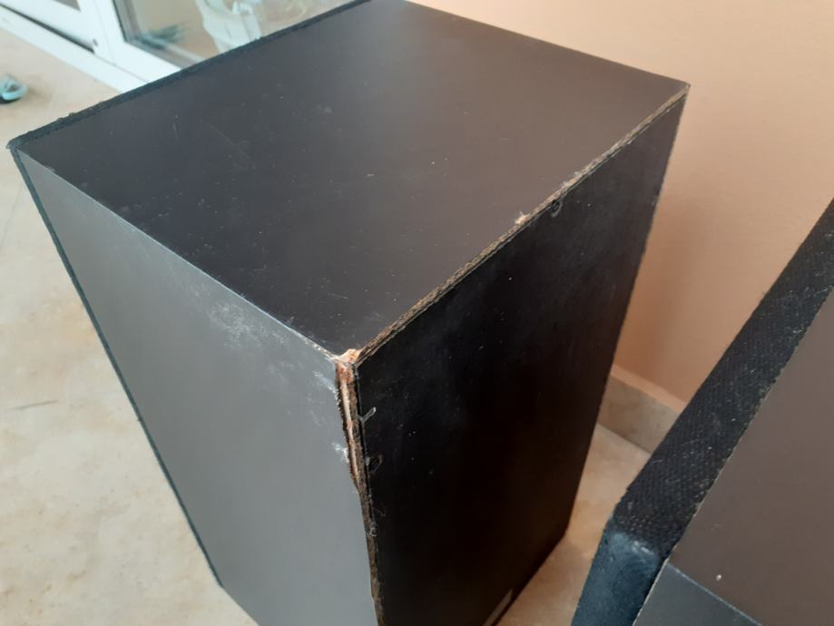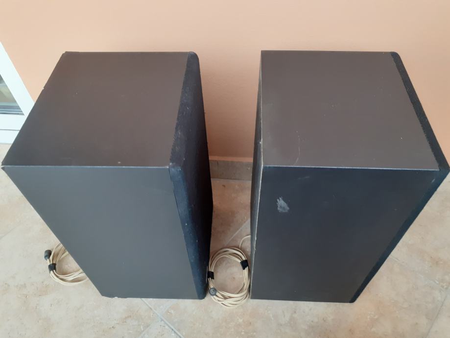 Fotografije uz oglas prikazuju oglašene predmete. Zvučničke jedinice su neoštećene, spojevi stranica kutija su ispravni, dok na kutijama i mrežicama postoje isključivo površinska oštećenja.