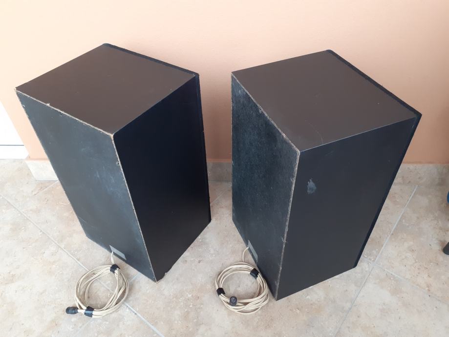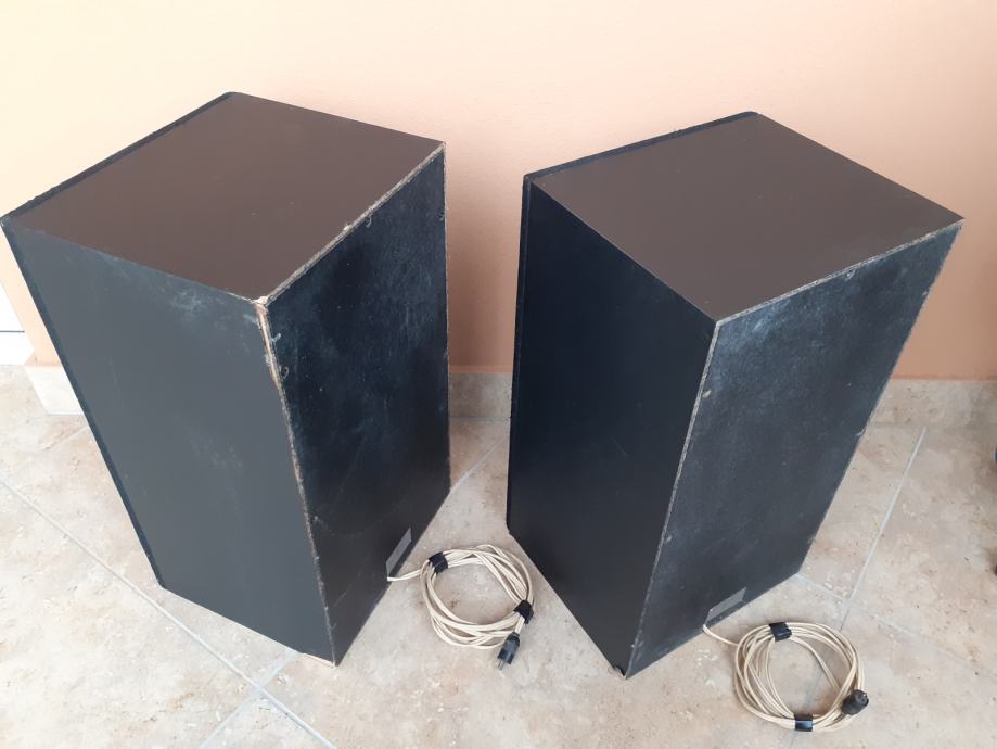 Prodajem potpuno ispravan par dvostaznih zvučnika RIZ ZK 132, na kojima su sve komponente originalne, među kojima su i kalotni visokotonci i skretnice. Snaga svake kutije je 30 W pri 4 Ohma, širina 25, dubina 21 (sa mrežicom 23) i visina 41 cm.