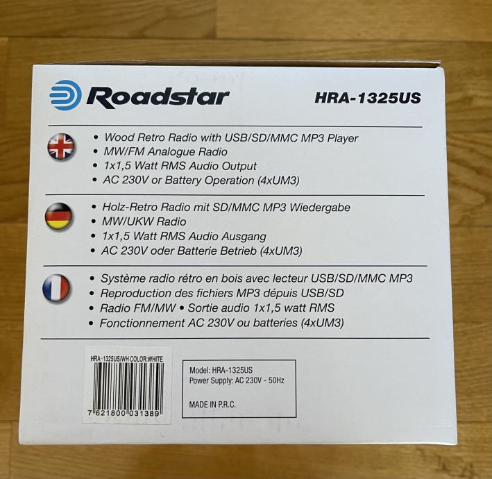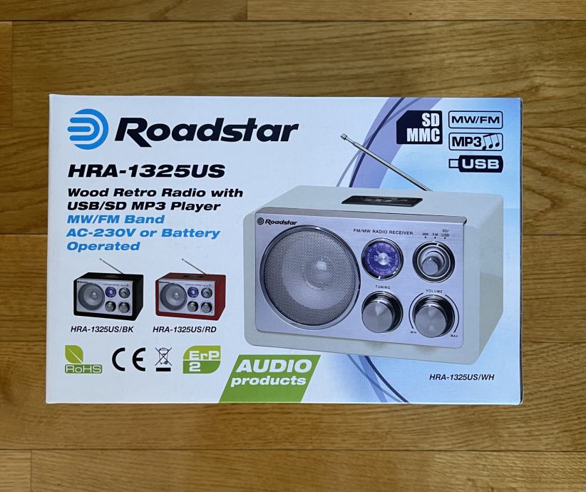 Roadstar HRA-1325US drveni radio prijemnik retro izgleda.