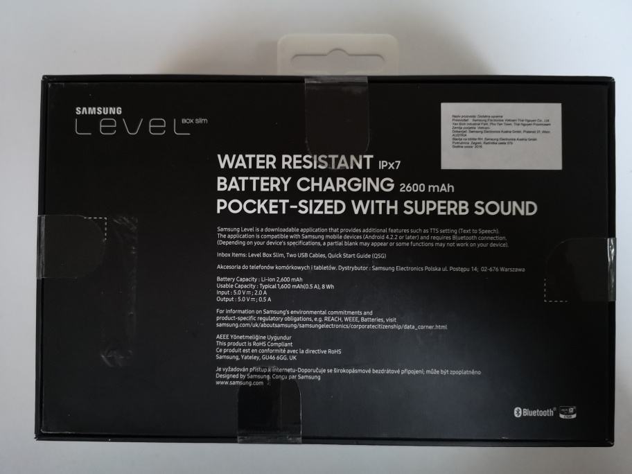 Prodajem Bluetooth zvučnik Samsung Level Box Slim, crne boje. Potpuno nov i neotvoren, cijena u dućanu 899 kuna. Vodootporan, može se koristiti i kao prijenosni punjač za mobitel.