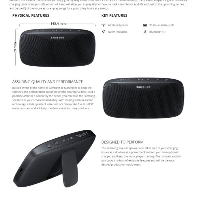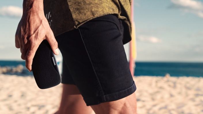 Hi-end pocket-size water resistant (IPx7) speakers by Samsung.