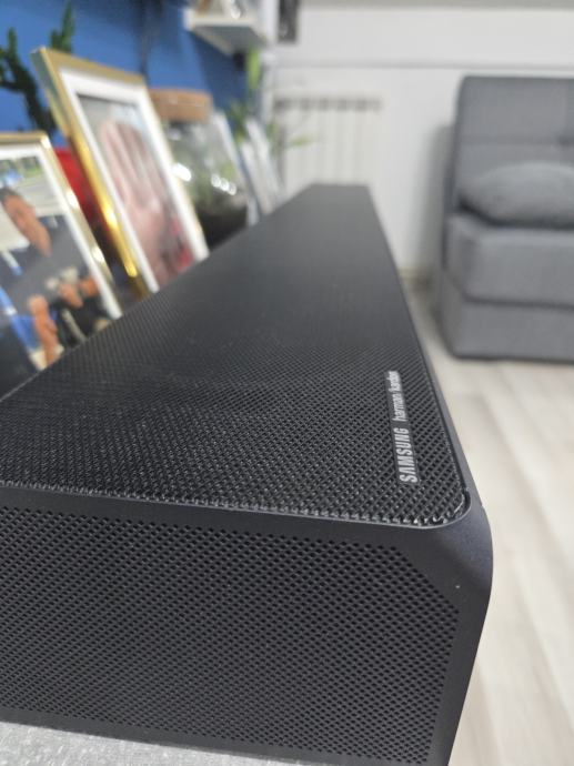 Prodajem vrhunski Samsungov soundbar model Q90R konfiguracije zvučnika 7.1.4. Kupljen 2019 godine u Sancta Domenici odmah čim je izašao na HR. tržište kao top model soundbara za 2019 godinu u svijetu. Sadrži 17 zvučnika u svojoj postavi. Soundbar potpisuje HARMAN/KARDON. Postavljen i radi bezprijekorno. Provjera svega pri dolasku kod mene. Podržava sve svjetski poznate audio formate. Dolby Atmos,DTS-X itd. Sve provjerite o tom modelu na internetskim stranicama. Soundbar nema žičano povezivanje samo mu treba strujne utičnice za rad. Uređaj je ažuriran na eARC od strane Samsunga. Daljinski upravljač od prvog dana upakiran u foliju. Soundbar nema tragova korištenja !