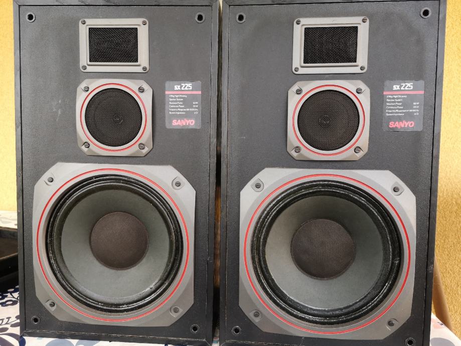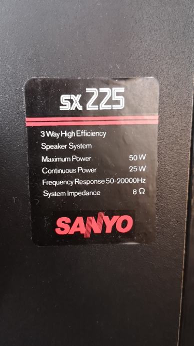 Sanyo trosistemski zvučnici, specifikacije u slikama, odlično stanje, potpuno ispravni, veoma čistog i jasnog zvuka. Odlični zvučnici za manje prostore.
