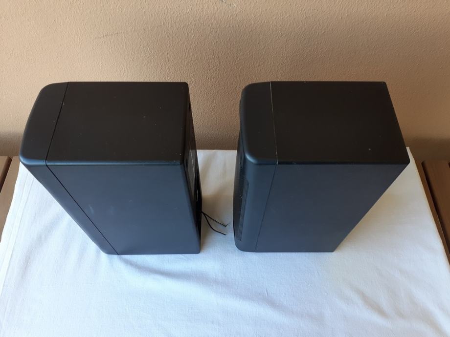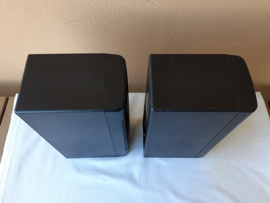 Ispravni su i samo su površinski oštećeni. U jednom od njih se pri prevrtanju čuje kotrljanje nekog odvojenog predmeta, ali zvučničke jedinice su na mjestu i ne znam što bi to moglo biti. Masa svake kutije je 645 g, širina 10, dubina 15 i visina 26 cm.