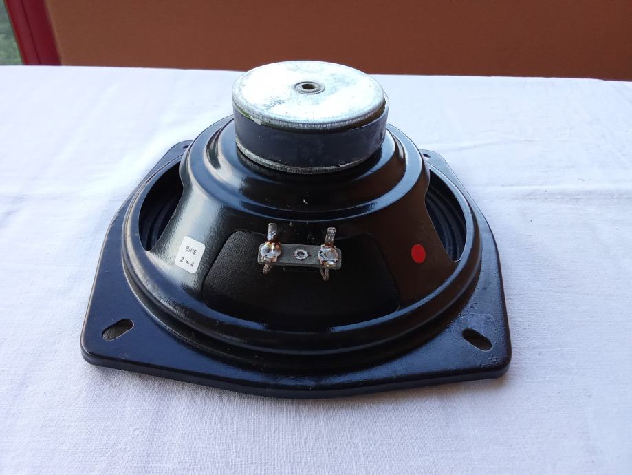 Prodajem samo jedan bas zvučnik marke Sipe, kojemu ne znam oznaku modela, kao što ne znam ni oznaku modela kutije sa koje sam ga skinuo. Vanjski promjer ovjesa je 155 mm, vanjski promjer obruča košare 178 mm, dubina ugradnje 67 mm, promjer magneta 61 mm, debljina magneta 12 mm, a promjer rupe na kutiji mora biti 165 mm ako se pričvršćuje na vanjsko lice kutije ili do 160 mm ako se pričvršćuje na njeno unutarnje lice. Masa predmeta je 575 g. Otpor je 4 Ohma, snaga nije navedena, ali za očekivati je maksimalno 30 W.