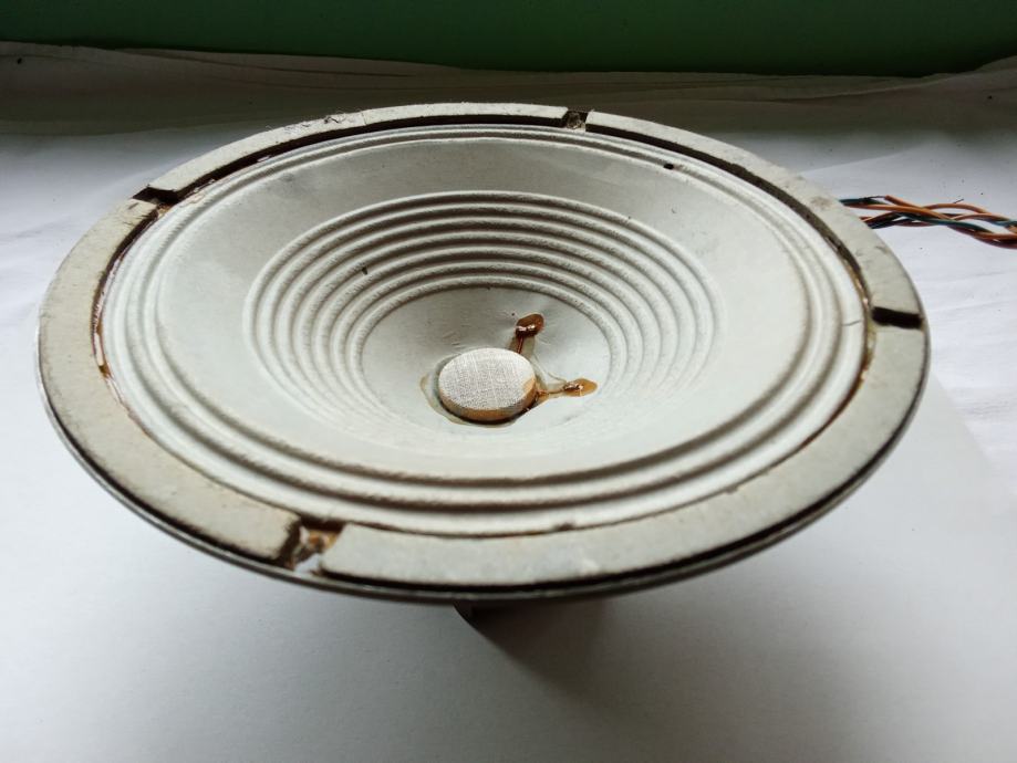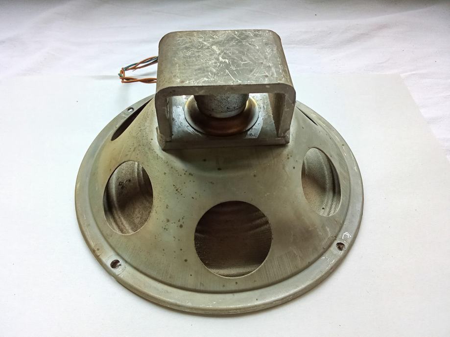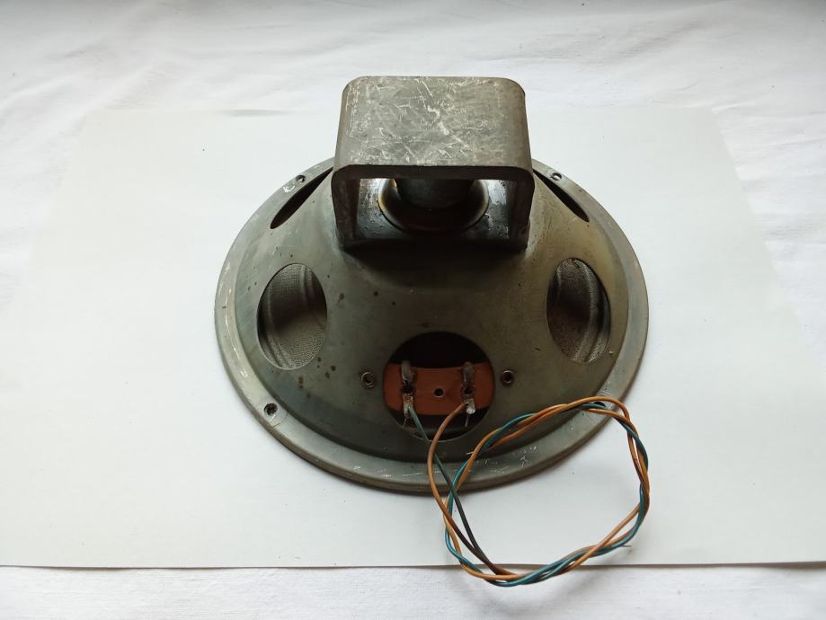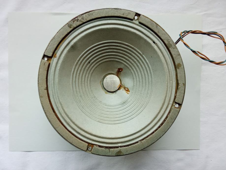 Prodajem širokopojasni zvučnik, koji je pripadao uređaju kojemu ne znam ni ime proizvođača niti naziv modela, a zbog natpisa na Srpskom jeziku na poleđini uređaja, samo pretpostavljam da je proizvođač Ei Niš. Fotografije priložene uz oglas prikazuju ovdje oglašeni predmet, a zadnja prikazuje prednju stranu spomenutog uređaja. Biti ću zahvalan ako netko tko identificira uređaj podijeli sa mnom ime proizvođača i modela. Masa zvučnika je 500 grama, vanjski promjer rebrastog ovjesa je 145 mm, vanjski promjer metalnog obruča košare 166 mm, dubina ugradnje je 75 mm, a promjer rupe za ugradnju može biti 150 mm ako se pričvršćuje na vanjsko lice zvučničke kutije ili do 145 mm ako se pričvršćuje na njeno unutarnje lice. Zvučnik je neoštećen, dijafragma je malo izobličena oko sredine.