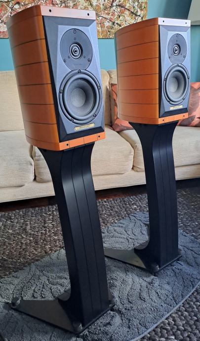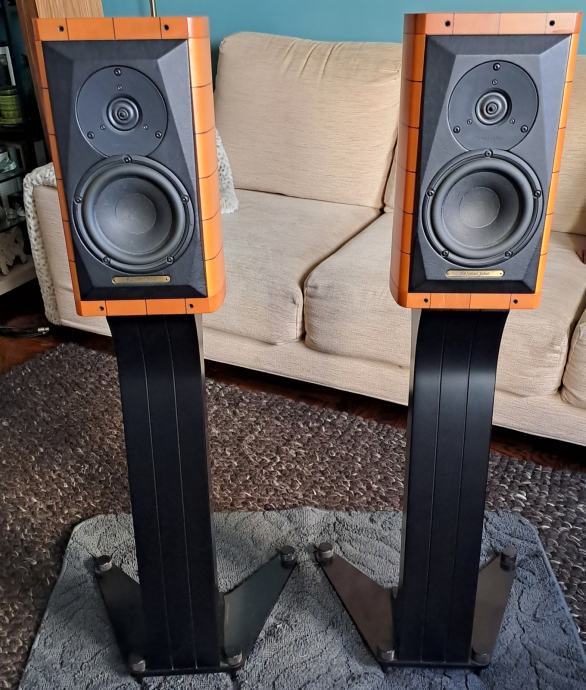 Zvučnici su u odličnom stanju, sa ambalažom, originalnim stalcima i priborom. Kupljeni kod domaćeg zastupnika, Media Audio.