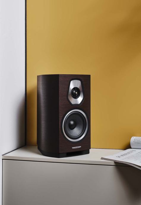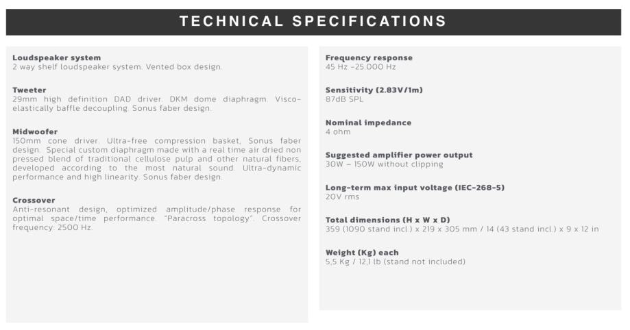 Sonetto is a true Sonus faber collection that features all of the iconic elements of the brand: natural sound, natural materials, the Lute shape, the pristine finishes typical of fine Italian craftsmanship, cutting-edge technology and manufacturing done completely in our factory in Vicenza. A clean industrial design language has been used focusing on the elegant proportions of the wood cabinets. The front baffle is an integral part of the cabinet creating a seamless structure with the curved sides. This form is accented by gun-metal finished aluminum aesthetic frames and a soft leather top. Solid aluminum hardware is used throughout the design to provide solidity and maintain consistency with the rest of the product portfolio. Down-firing reflex ports allow for forgiving room placement and consistent bass output throughout the listening environment.