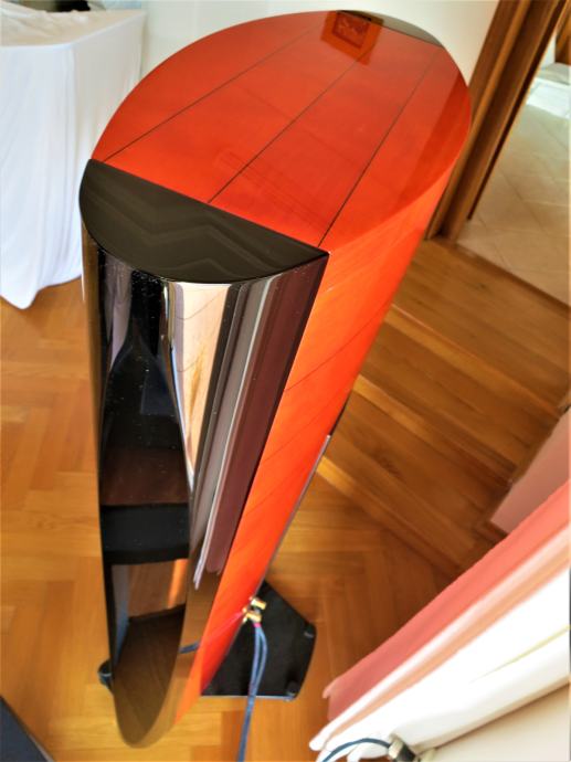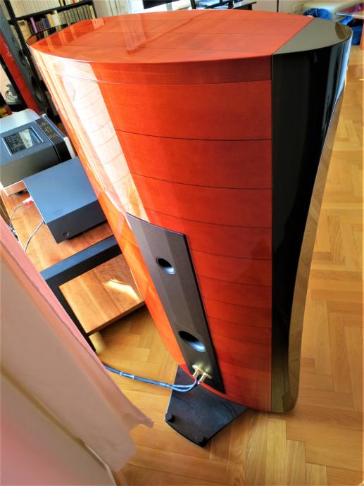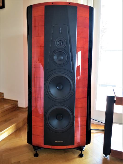 Apsolutno stanje novoga i pravi raritet: za 35. obljetnicu postojanja Sonus faber je proizveo posebnu limitiranu seriju svojih svojevremenih perjanica - Stradivari zvučnika, i to svega 35 pari, od čega je u ovoj posebnoj boji njih svega nekoliko. Serijski broj je 030. Ovaj par Sonus Faber Stradivari 35th Anniversary Edition zvučnika tehnički je i optički u totalno besprijekornom stanju. Zvučnici su stari jedva 3 godine te su bili vrlo rijetko u upotrebi. Originalno pakiranje, uključujući kompletnu popratnu opremu. Cijena novih: 49.000 € (više ih nema u prodaji). Demo je moguć, prema želji i s vašim komponentama. Moguće je i osobno preuzimanje zvučnika u Zagrebu, i dogovoreni prijevoz u osobnom angažmanu, a u cijenu je uključen moj osobni besplatni prijevoz na bilo koju adresu u Hrvatskoj te također po EU zemljama, kao i slanje paketa s punim osiguranjem na bilo koju adresu u svijetu. Za osobno preuzimanje zvučnika vrijedi niža cijena. Prvi vlasnik u nepušačkom prostoru, bez kućnih ljubimaca; drvo i koža zvučnika nikada nisu izlagani direktnom suncu.