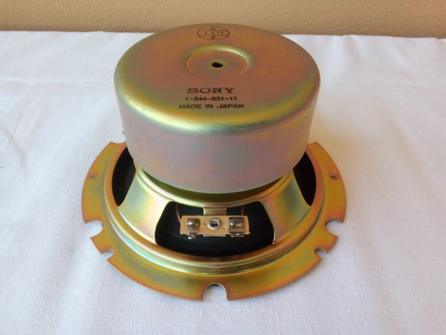 Ispravan woofer, skinut sa Sony SS-H2700E kutije, nepoznate snage, radnog otpora 6 Ohma, dok multimetar u mirovanju pokazuje 5 Ohma. Masa mu je 1120 grama, dubina ugradnje 73 mm, vanjski promjer ovjesa 120 mm, vanjski promjer metalnog prstena 147 mm, a promjer rupe za ugradnju može biti između 120 i 130 mm ako se pričvršćuje sa unutarnje strane kutije ili između 125 i 130 mm ako se pričvršćuje sa njene vanjske strane.