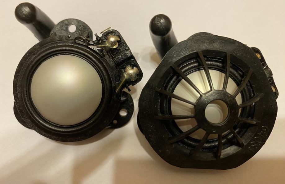 Vrhunski Bowers & Wilkins visokotonci nove generacije, 25 mm zavojnica, ferrofluid, kavitacioni tunel (nautilus tehnologija), neodijumski magnet, metalna kalota presvucena keramikom. Mogu se napasati na vecinu B&W zvucnika s metalnom kalotom. Potpuno novi. Mrezica na njima je zastitna mrezica radi transporta. Cijena za par samo 150 €