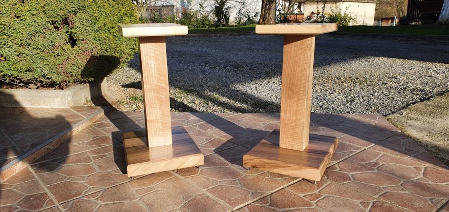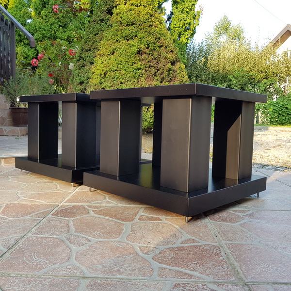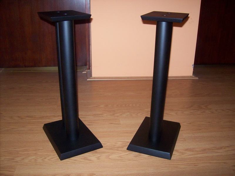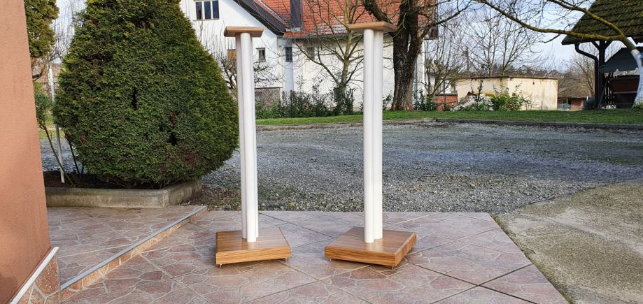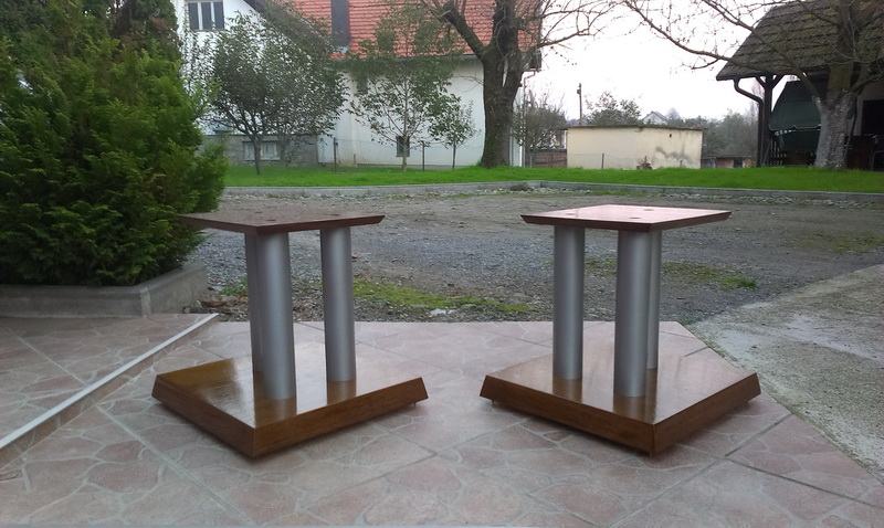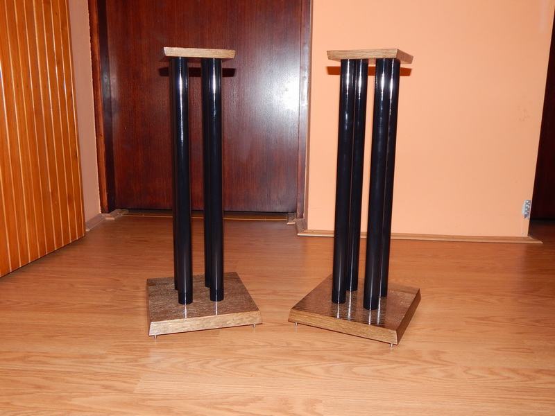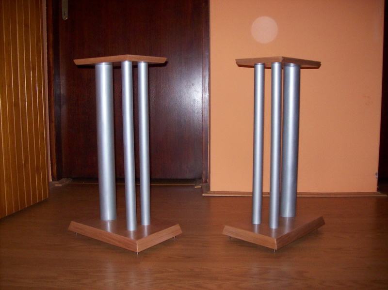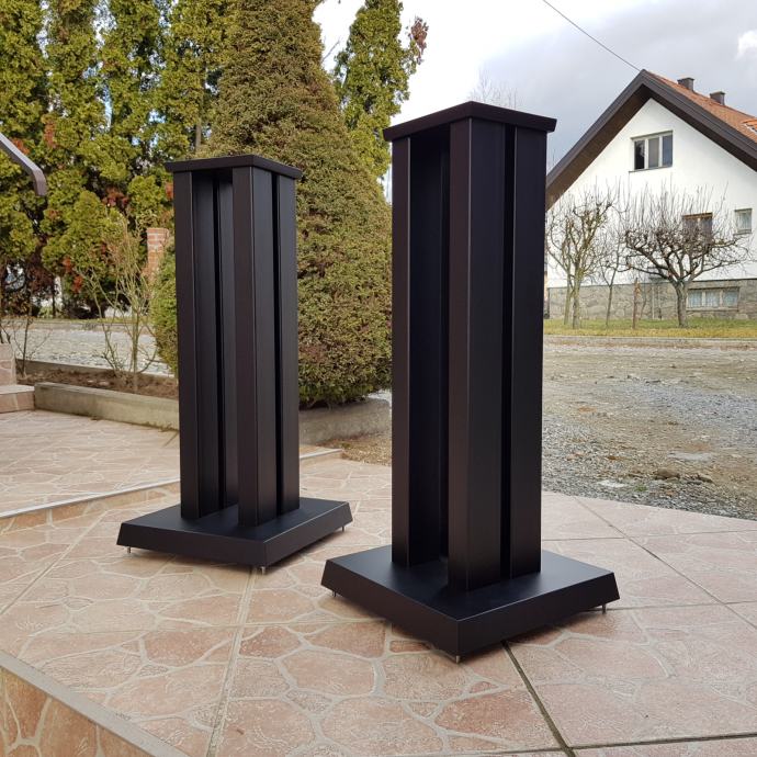 Novi stalci za zvučnike, visine 60cm, šiljci(inox/krom). Moguće razne varijacije u bojama, oblicima ploha, broja cijevi, visina, itd. Iskazana cijena je za osnovni model u dimenzijama : donja ploha (220x270mm). gornja ploha(150x180mm) MDF debljine 32 i 16mm, 1 cijev fi 60mm, mogućnost punjenja.(znači crna cijev i plohe u crnoj boji). Furnirane i plohe od punog drveta(trešnja, hrast, orah, jasen, itd...) i druge dimenzije cijevi i ploha poskupljuju izradu (sve stvar dogovora).