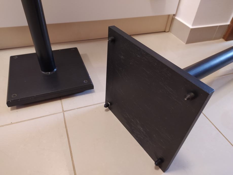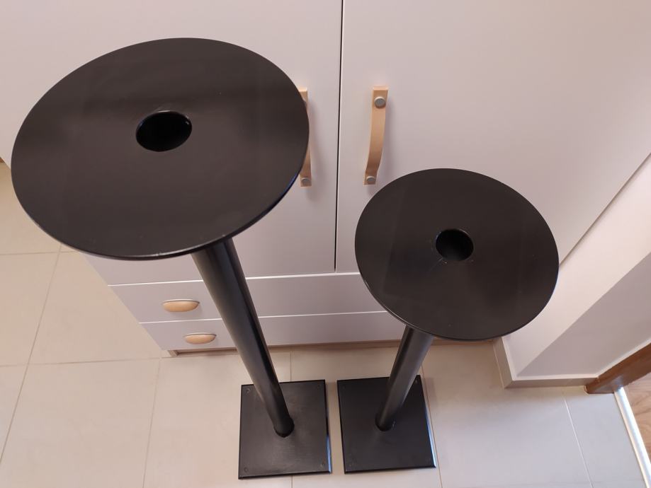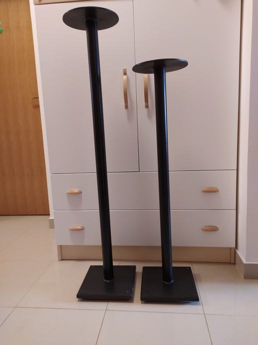 Prodajem ručno izrađene čelične stalke za zvučnike kućnog kina (2 prednja i 2 stražnja) na šiljcima s mogućnošću punjenja pijeskom.