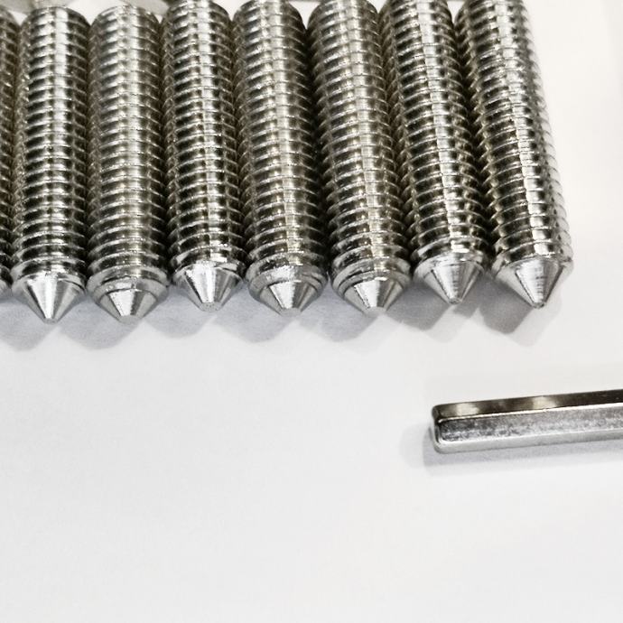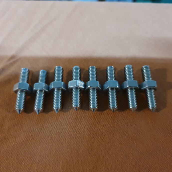 Novi šiljci za zvučnike i zvučničke stalke, izrađeni od tvrdog visoko kvalitetnog kroma, promjera 6mm(M6), duljine 30mm. Glava za ključ je imbus i na slici je ilustrativno, znači ne ide uz set. Cijena je za set od 8 šiljaka i 8 matica. Moguća prodaja i na komad.