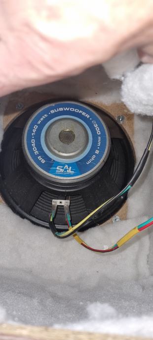 Zvučnik je novi SAL audio RMS 140w 8 oma max 280w služio je kao wufer za kučno kino 5x65w radio vrlo malo i nije bio opterečivan ,jer je radio na snazi od 65w.može se kupiti samo zvučnik cijena mu je onda 28 eur .
