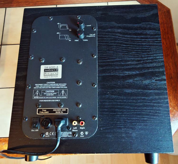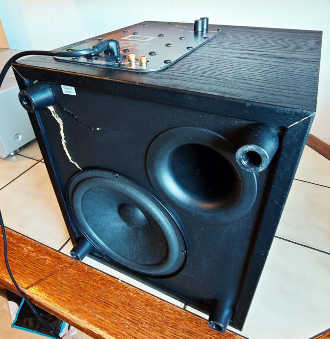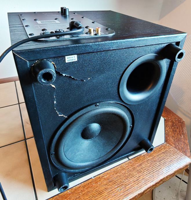 Prodajem ispravan sub JAMO SW 6000 A. Oštećen donji dio (vidljivo na slikama), ali ne utječe na kvalitetu zvuka.