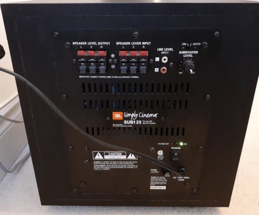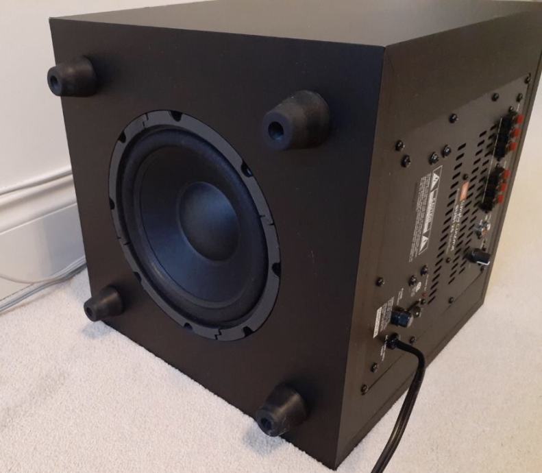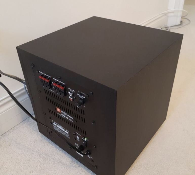 Izvrstan aktivni subwoofer JBL SUB125, down fire konstrukcija, bas iznimno dubok i brz, pojacalo snage 125 W/sin, ver. 2 s pojacanim hladjenjem, jacim bas driverom i nizom reznom frekvencijom. Cijena samo 850 kn