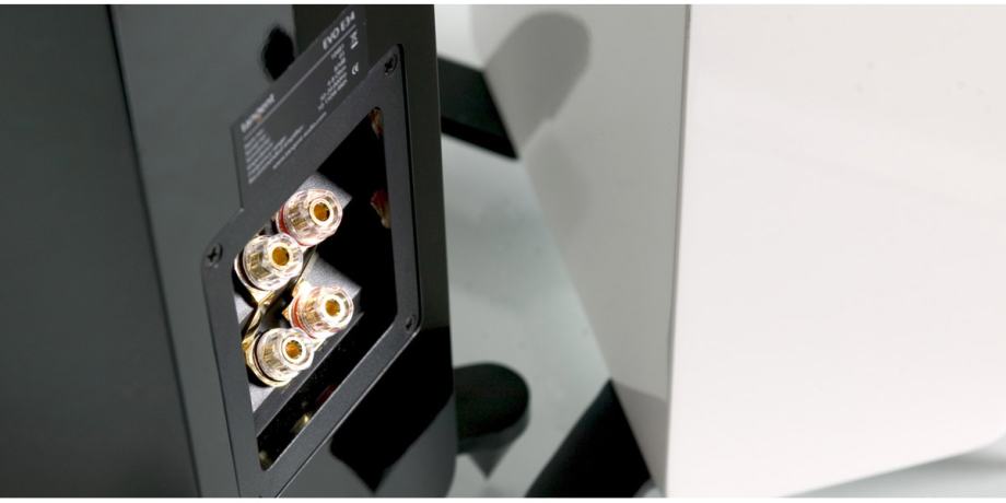 Samostojeći zvučnici u crnom "high-gloss" finišu.