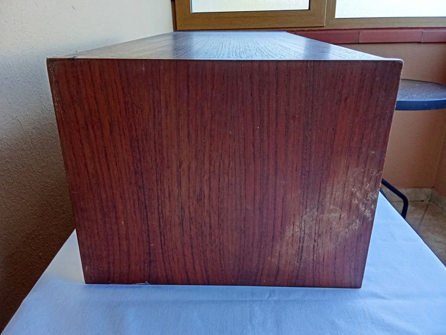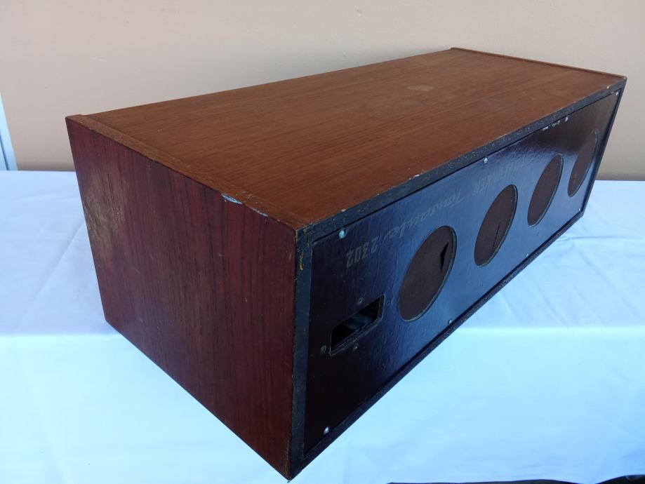 Prodajem samo jednu dvostaznu zvučničku kutiju Telefunken Tonsaule 2302, u kojoj su jedan širokopojasni elipsasti zvučnik i jedan kružni visokotonac. Ukupni otpor kutije je 5 Ohma, snaga nije navedena, ali, s obzirom na vrijeme kada je kutije proizvedene, za očekivati je najviše 25 W i oko 10 W RMS snage. Masa kutije je 6 kg, mjere prednje strane su 65 i 21 cm, dok je dubina 27 cm.