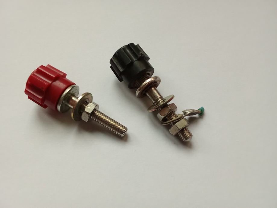 Dvodjelni terminal za jednu zvučničku kutiju. Koj jednog priključka nedostaju dvije matice koje se postavljaju sa unutarnje strane i podloška sa jezičkom na kojeg se lemi žica. Cijena je fiksna, Poklanjam ga onome tko kupi nešto iz moje ponude, što cijenim 10 € ili više, ali molim kupca da me pritom podsjeti da sam ovo ponudio.