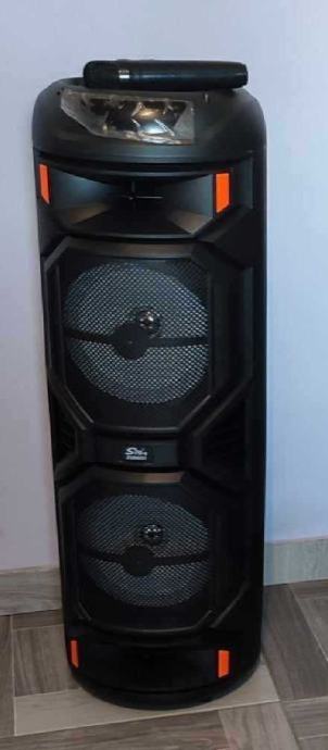 Prodajem samo zato jer sam za rodendan dobio 2 zvucnika kad su svi znali kaj hocu. Zvucnik ima rucku i kotace za lakse prenosenje.. Zvuk fenomenalan, Moguca proba prije kupnje .. U kutiji sa punjacem, mikrofonom i daljinskim .. Cijena samo 110 eura .. MOGUCA DOSTAVA