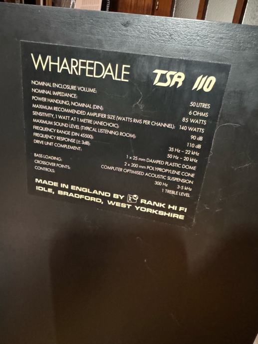 Kratica TSR na Wharfedale zvučnicima označava "Tall, Slim, Reference" (Visok, Tanjurast, Referentni).