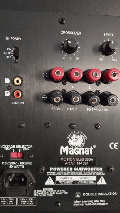 Yamaha receiver, zvučnik Pioneer, woofer Magnat