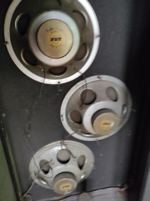 Prodajem dvije zvučne kutije FBT 8ohm, u svakoj kutiji se nalaze 3 zvučnika (svaki promjera 25cm).